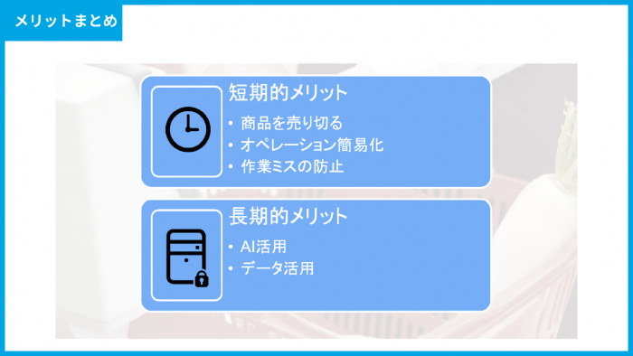短期的な効果と長期的な導入メリットにわけると、このようにまとめることができます。