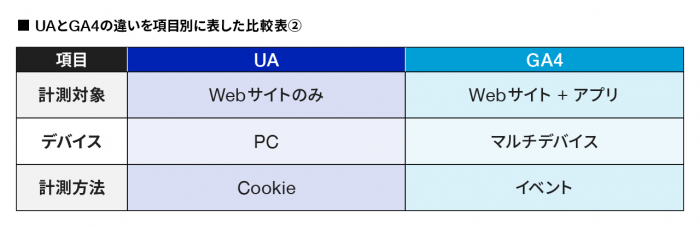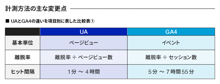 GA4とUAはまったく別の解析ツールとして認識しておく必要があります。GA4はWebサイトを計測する「軸」がUAとは異なり、ページビューではなく、イベント(=ユーザーのアクション)を計測の指標とします。