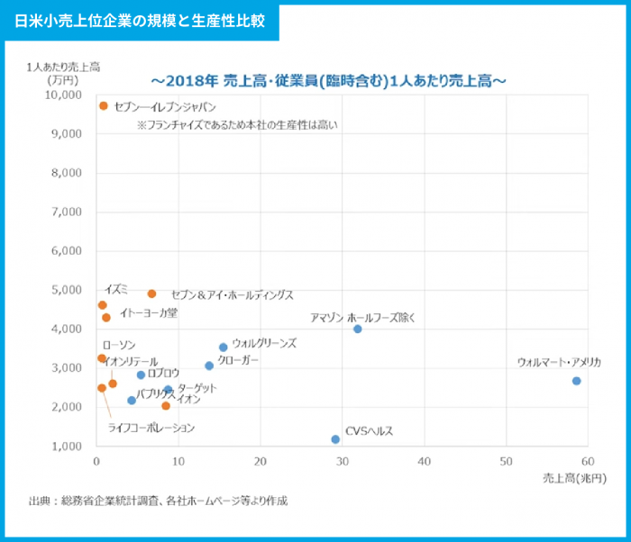 こうした調査結果からは、海外と比べて労働生産性の低い日本の中で、小売業はその平均よりも低いということがわかります。