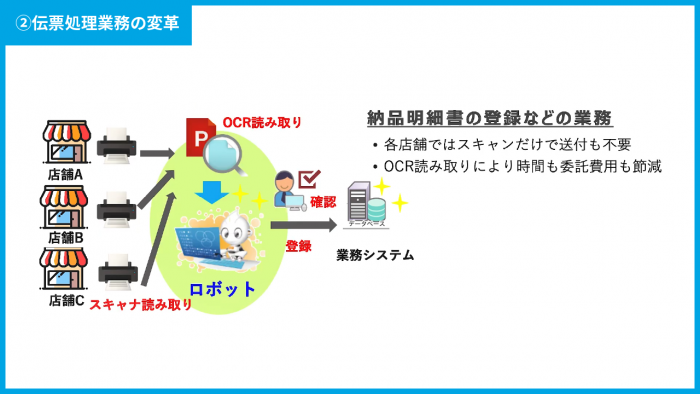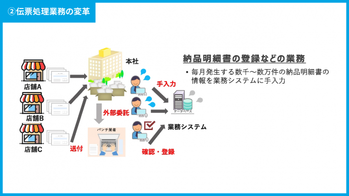 次は業務自体を変革した事例として、伝票処理業務のRPA活用をご紹介します。