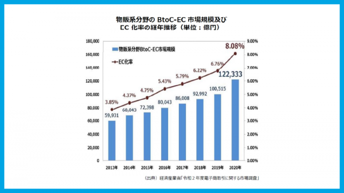 この図はECの市場規模を表したものです。年々市場規模が拡大していることがわかります。