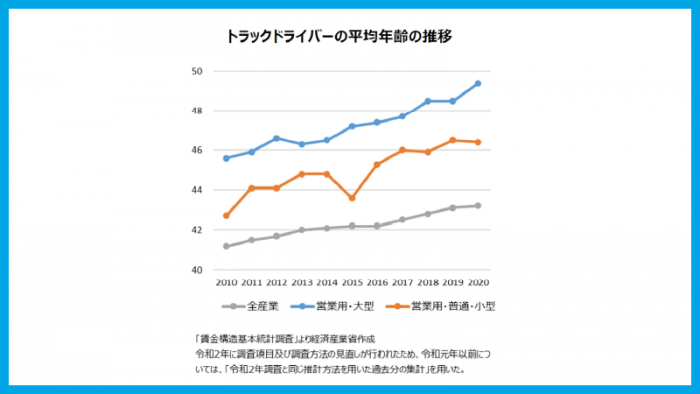 一方で、この図はトラックドライバーの平均年齢を示したものです。