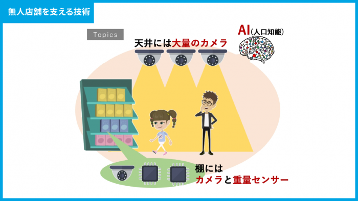 また、お客様が棚の前に立って商品を手に取った場合には、それを検知する必要があります。カメラと重量センサーを組み合わせることで、商品を手にした際の検知の精度を高めています。