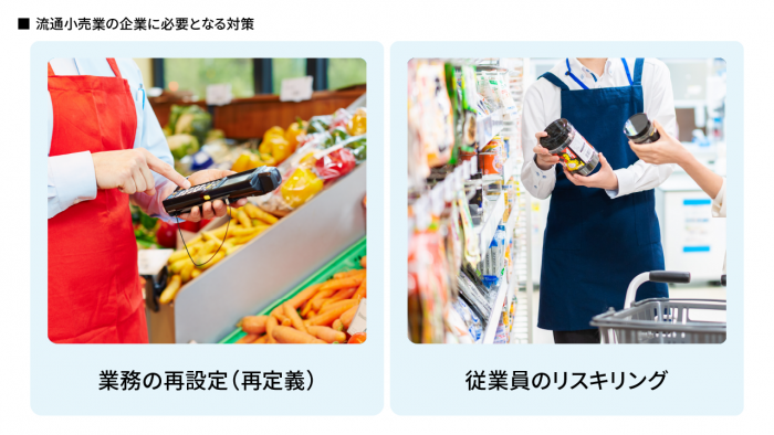 そうした業務の高度化に対応するためには、流通小売業の企業は主に以下の2つの対策が必要になるでしょう。