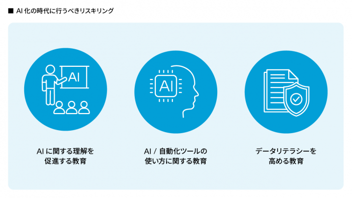 こうした“AIを使いこなせる人材”を育成するために、今後必要となってくるのが従業員のリスキリングです。
