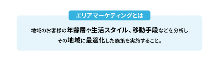そこで活用すべきなのがエリアマーケティングです。エリアマーケティングを実施することで、地域のお客様の特性やニーズを分析し、適切な商品選定や販促プロモーションを行えます。