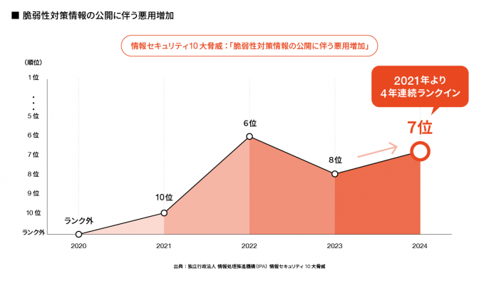 Webアプリケーションのシステムやプログラムに脆弱性が発見されると、開発ベンダーなどがその情報を公開し、修正プログラム(パッチ)を提供します。一方で、その情報を悪用し、脆弱性への対応を行っていないWebサイトを狙うサイバー攻撃が増えています。