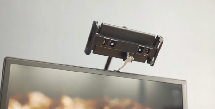 図2. ディスプレイ上部に取り付けたUltraleap社のハンド・トラッキング・センサーの一例