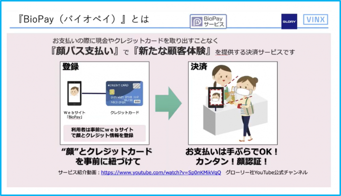 図3. 認証端末に顔を映すだけで決済が完了する、グローリーの顔認証決済サービス「BioPay」にも対応
